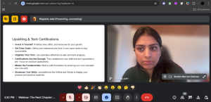 This insight reinforced the importance of continuous learning. Whether through structured courses or hands-on practice, upskilling is the key to staying relevant. Her advice? Start small, but stay consistent. Choose a tool, a language, or a platform and build from there. Progress, no matter how slow, is still progress.