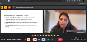 Fatima’s session wasn’t just about returning to work; it was about reclaiming confidence, embracing change, and redefining success. Her actionable insights included: